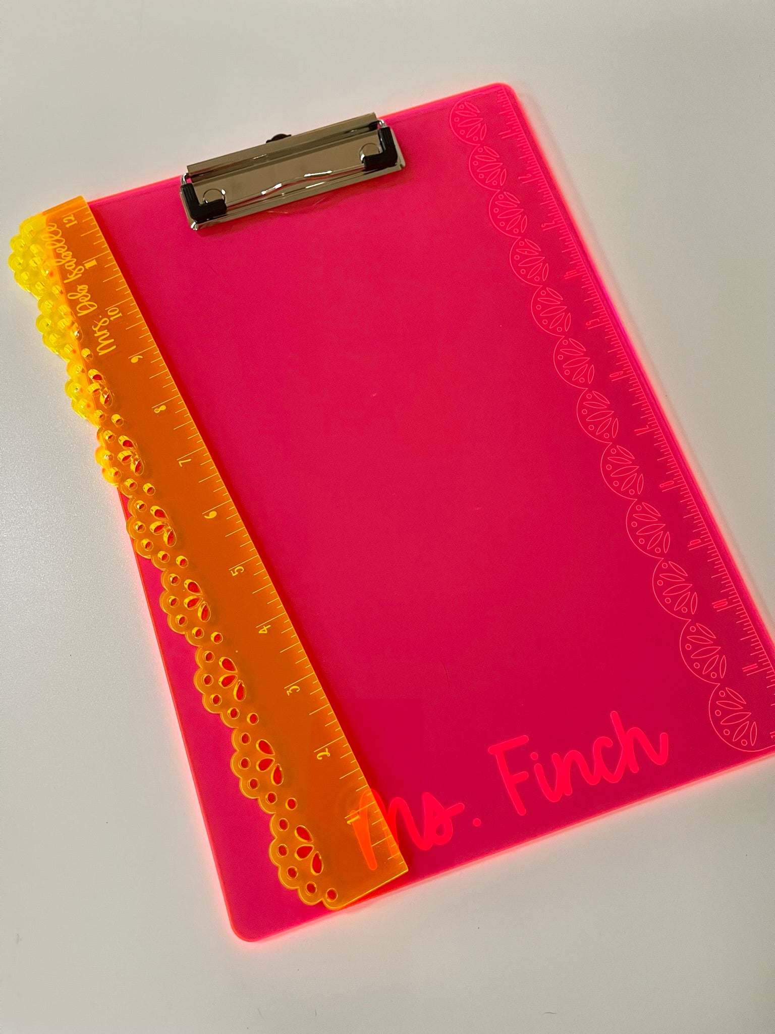 Start the year off right with the perfect teacher gift. Treat your new teacher to a personalized clipboard and ruler for their classroom.